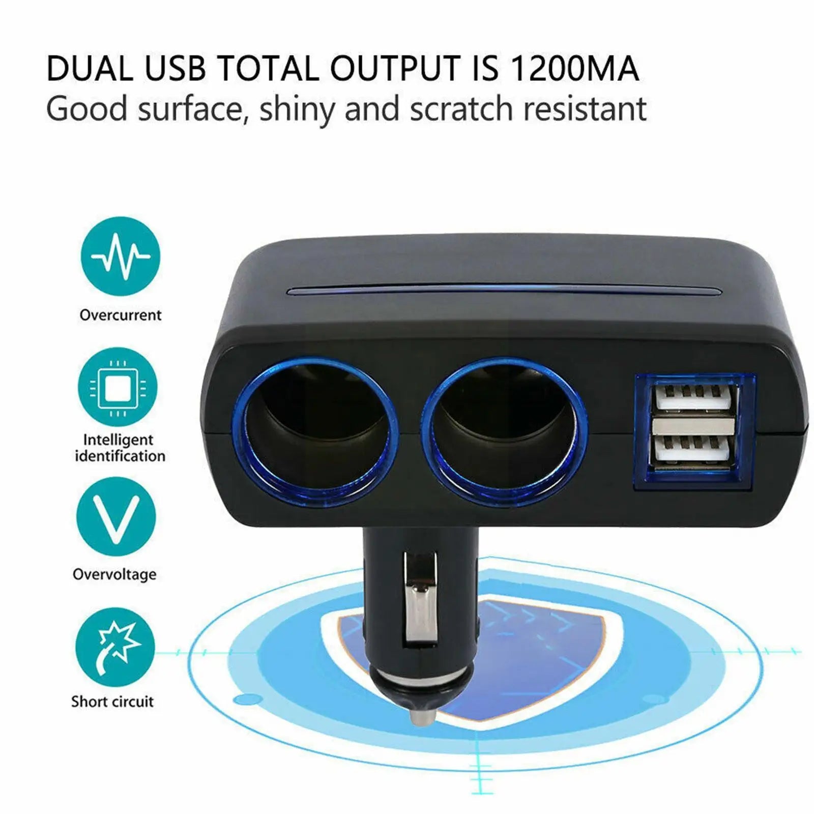 🚗 Dual USB Car Charger & Cigarette Lighter Splitter